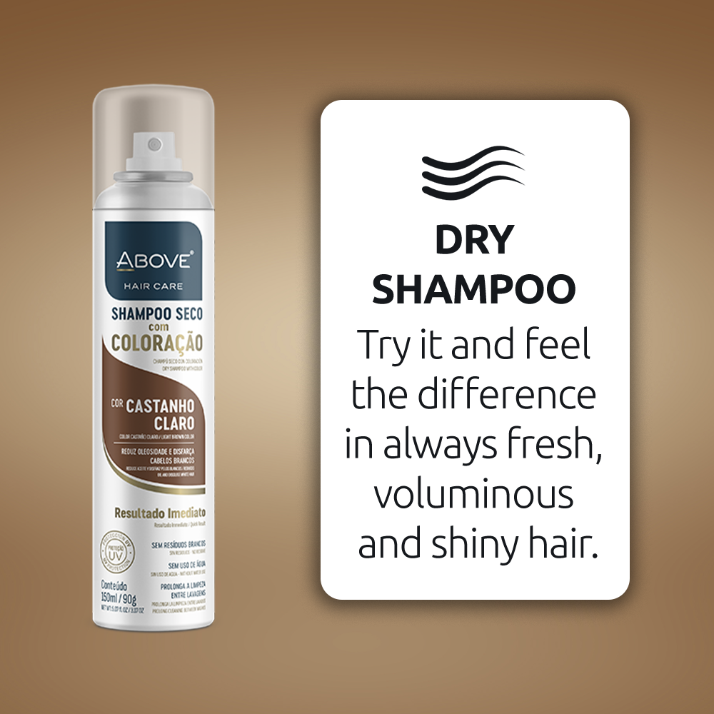 ¡El secreto para un cabello perfecto en segundos! El Shampoo Seco Above con Color Castaño Claro no solo elimina instantáneamente la oleosidad y el frizz sin usar agua, sino que también ayuda a disimular las canas con un acabado natural. Su fórmula avanzada no deja residuos blancos, protege contra los rayos UV y prolonga la sensación de limpieza entre lavados. Es la solución práctica y 100% vegana para mantener tu tono vibrante y tu melena con movimiento todo el día.